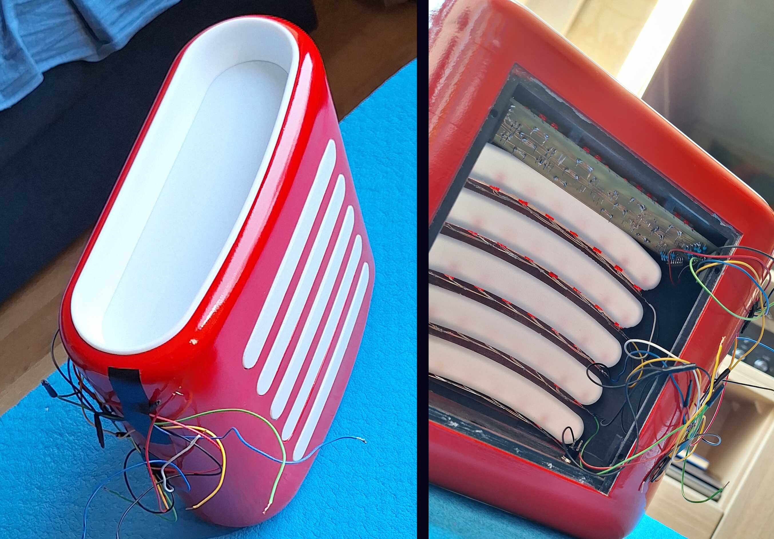 Viską sujungiau tiesiog ant stalo. Kai baigiau programuoti, viską