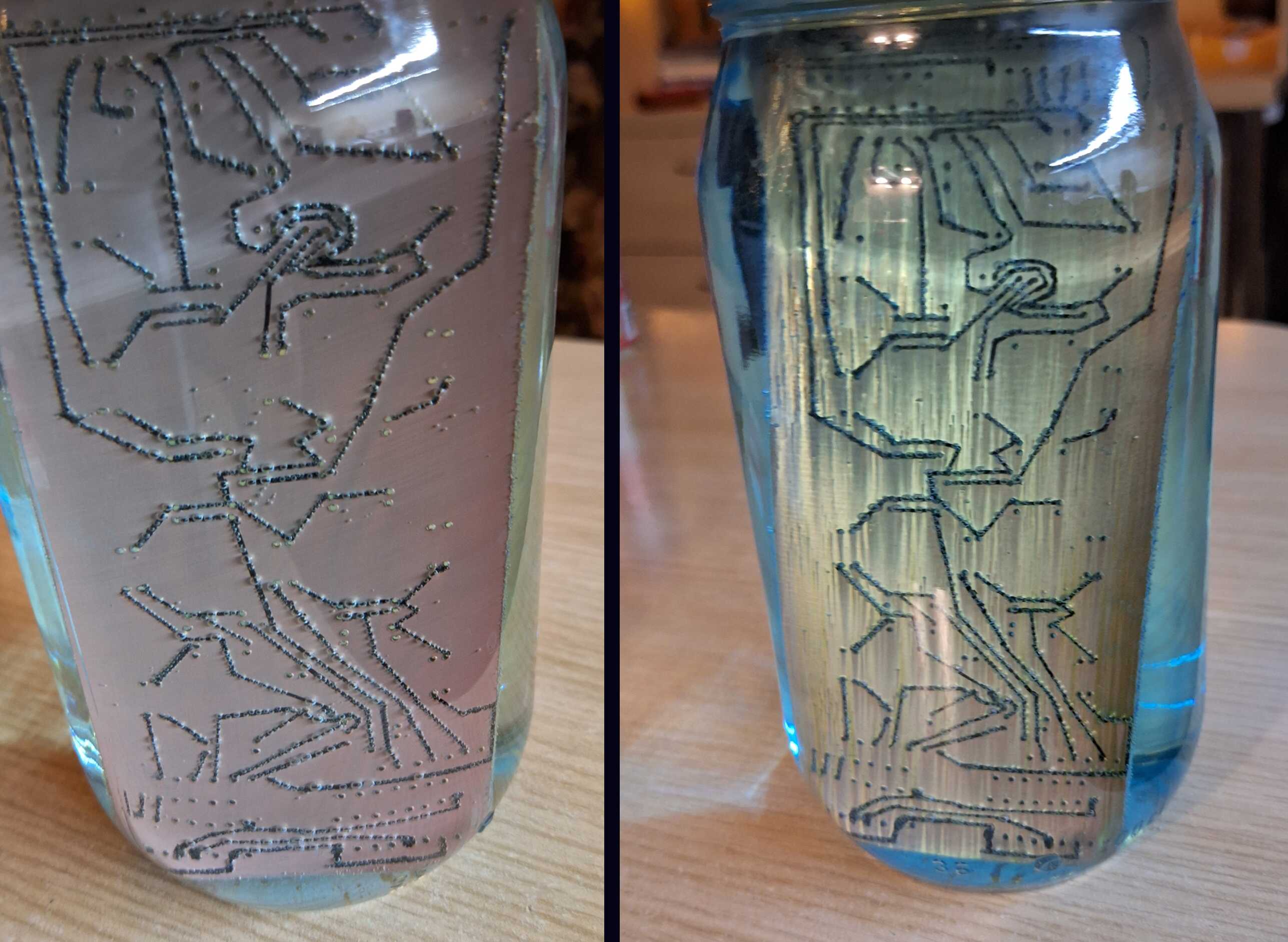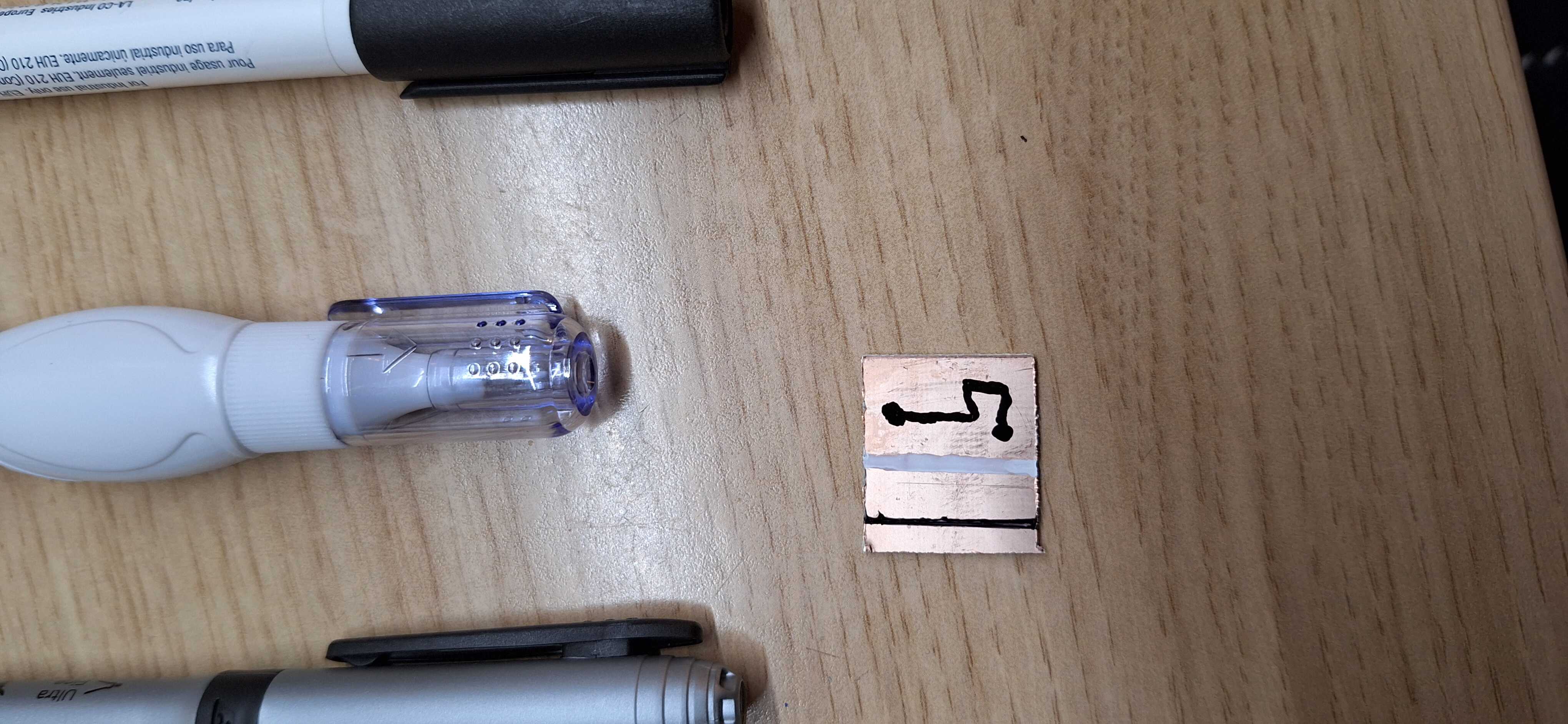 Ištraukus plokštę iš rūgšties, markeris liko vietoje, o nuvalius jį su