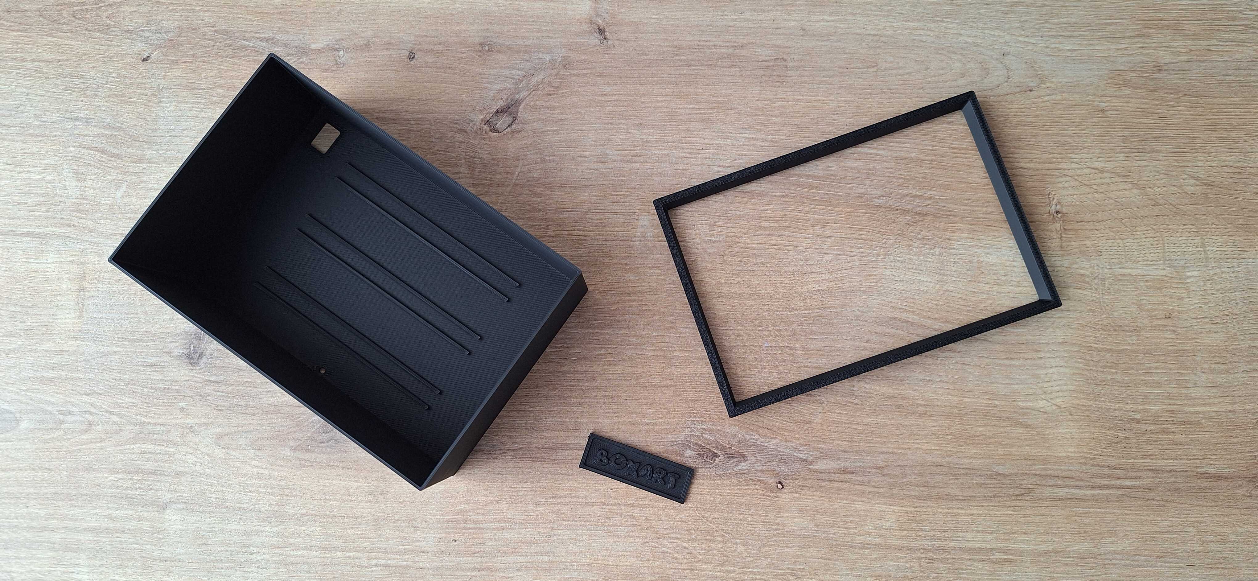 Po šiek tiek laukimo turime dėžę, rėmelį nuotraukai ir logotipą, kurį